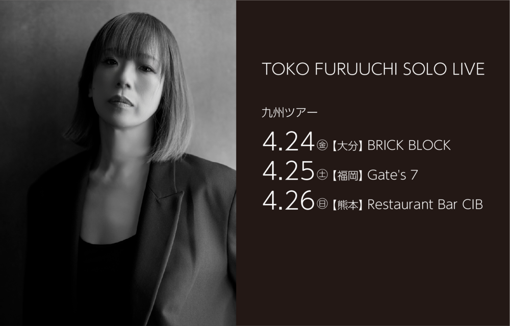 TOKO FURUUCHI SOLO LIVE 【熊本】Restaurant Bar CIB LIVE 2026/04/26(日) Restaurant Bar CIB 地図を表示 16:00開場/17:00開演 古内東子(Vo/Pf) 出演:古内東子(Vo/Pf) 料金:全席自由 7,000円(税込/ドリンク代別/整理番号付) ※未就学児童入場不可 URLをコピーする 報告する